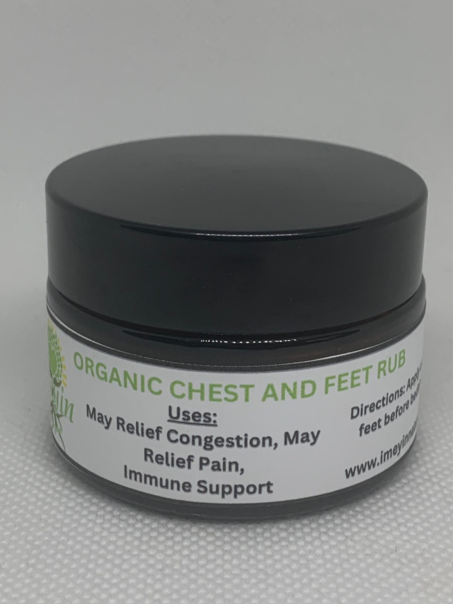 - Imeyin Organic Chest and Feet Rub was made out of a need to provide relief for my children. My son has very sensitive skin with so many allergies. I could not find any product that that will not break him out after use.