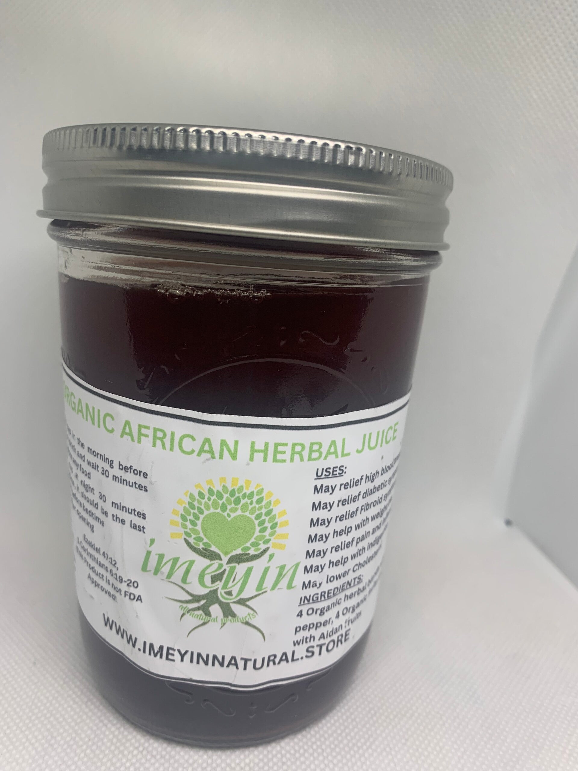 Imeyin Organic African Herbal Juice is made with carefully selected ingredients. Mostly sourced from African ancient trees. Grown in ancient soils that are not polluted with chemicals or toxins that are harmful to humans and other living organisms. Our ancestors used these fruits , vegetables and herbs to maintain a healthy long life.
