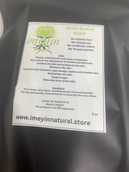 100% African Black Soap is an ancient cosmetic cleansing product from West Africa. It is handcrafted from farmed plantain (husk- ash), Shea Butter, Tree Bark, Pure Honey, and Coco Pods, African Black soap has been used in Africa for centuries mainly for its healing qualities. It naturally contains Vitamins A and E and Iron and is 100% Natural without lye, chemical or preservatives. Black Soap can be used all over the body, hair and face. Only a small amount is required as Black Soap lathers into bubbles quite quickly. Black soap is also called Ose Dudu, Alata and Anago from many African languages. It has many therapeutic benefits.